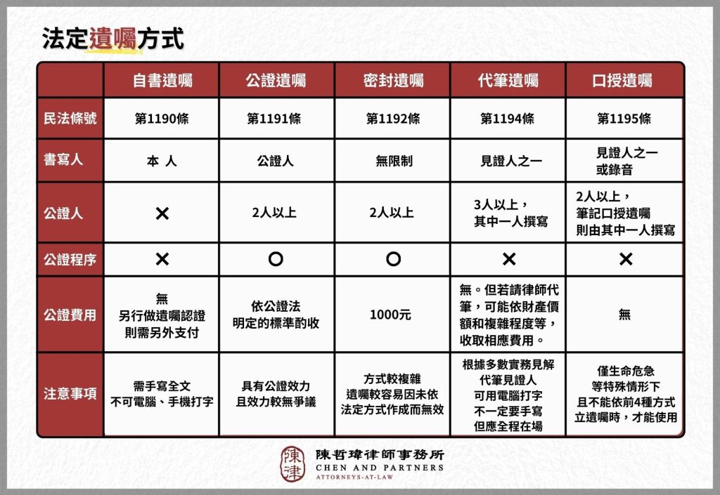 - 依據《民法》第1190條之規定,遺囑人必須「親自書寫」遺囑全文,不得以電腦打字方式取代。
